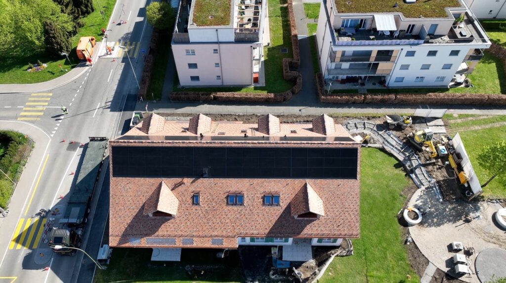 Integration of solar energy: a 37.5 kWp system was seamlessly integrated around the roof ridge as an in-roof system. This innovative approach optimises solar radiation while maintaining the architectural integrity of the building.