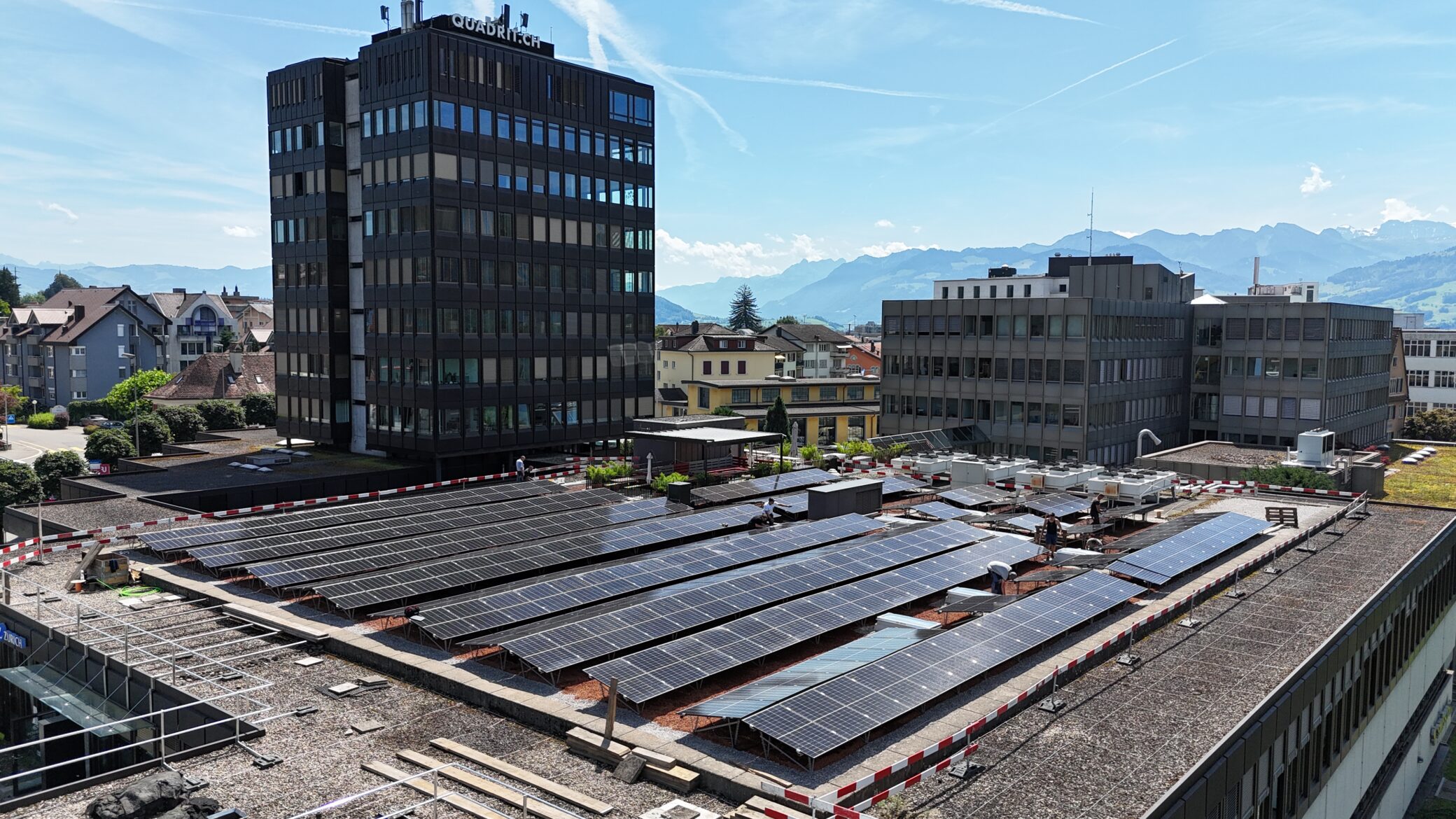 enshift is excited to collaborate with the real estate portfolio of this company to realize an ambitious project for the energy transformation of its buildings. The first milestone in this initiative is the utilization of the roof of a building in Rapperswil, which has now been equipped with a state-of-the-art solar system with a capacity of 145 kWp. To enhance its ecological impact, the solar system is surrounded by lush greenery that ensures optimal thermal management and creates a vibrant habitat for wildlife. In a world facing urbanization and habitat loss, this green sanctuary supports animals and bees that are essential to our ecosystem.